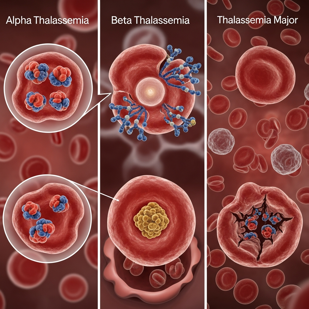 Thalassemia is a genetic blood disorder with different types of thalassemia, including alpha thalassemia and beta thalassemia forms. Each type varies in severity from mild to severe. Understanding the types of thalassemia helps with early diagnosis, proper treatment, and better management for affected individuals and families.